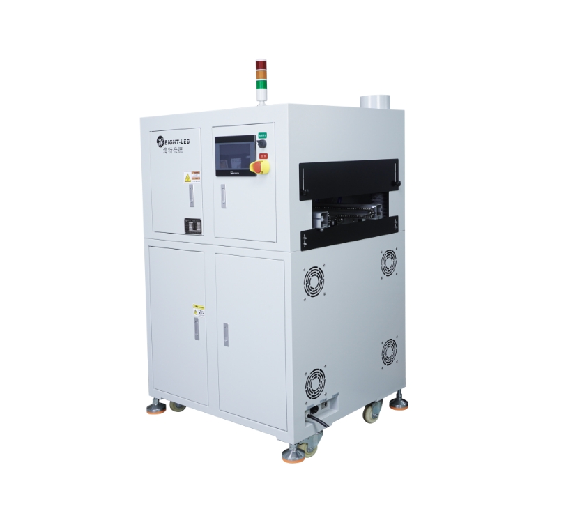 2. 設(shè)備提供聯(lián)機模式和單機模式可選,聯(lián)機模式下,本機通過SMEMA通信方式,跟上位機和下位機進行物料對接并固化,單機模式下,點擊啟動按鈕,UV機輸送帶及UVLED一直工作(UVLED可以屏蔽),點擊停止按鈕,傳送帶及UVLED停止工作。